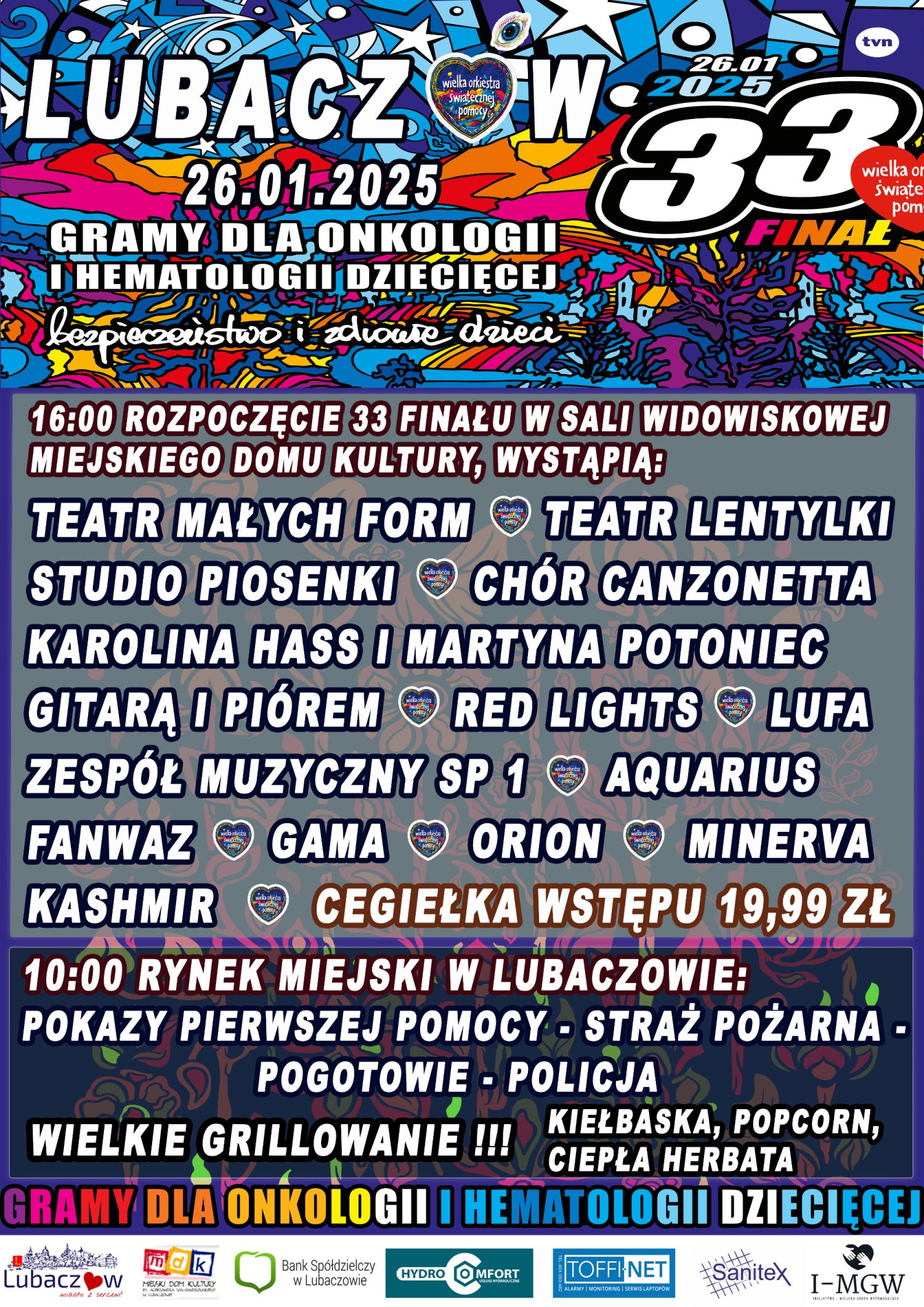 Serdecznie zapraszamy wszystkich na wyjątkowe wydarzenia w ramach 33. Finału Wielkiej Orkiestry Świątecznej Pomocy w naszym mieście!